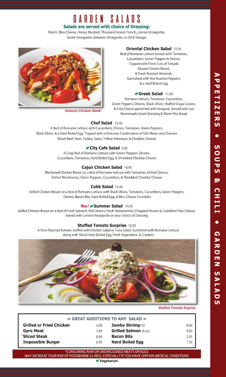 Welcome to City Cafe Diner, a hidden gem located at 511 Broad St, Chattanooga, TN. This diner stands out with its extensive menu offering something for everyone, making it a perfect stop anytime cravings strike, day or night. Open 24 hours, City Cafe Diner features an array of delectable choices, from hearty breakfast options like Home Fries and French Toast to vibrant Fresh Garden Salads and succulent Panini Sandwiches.
